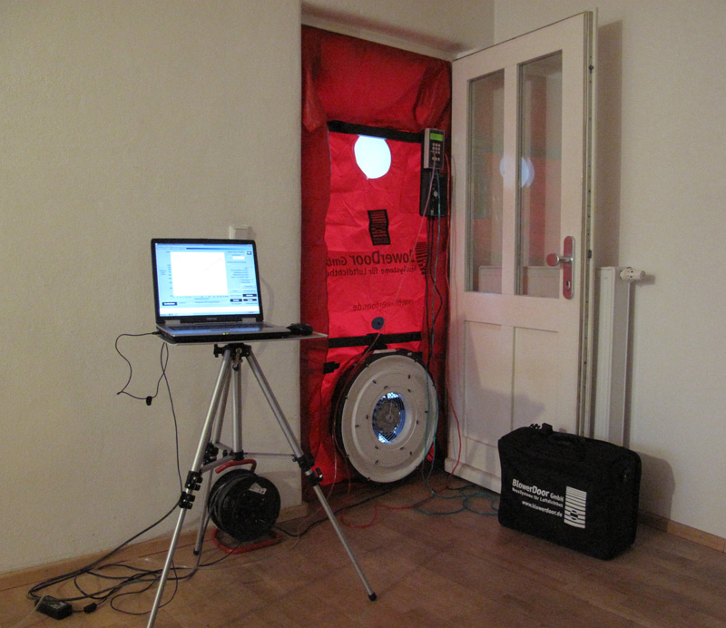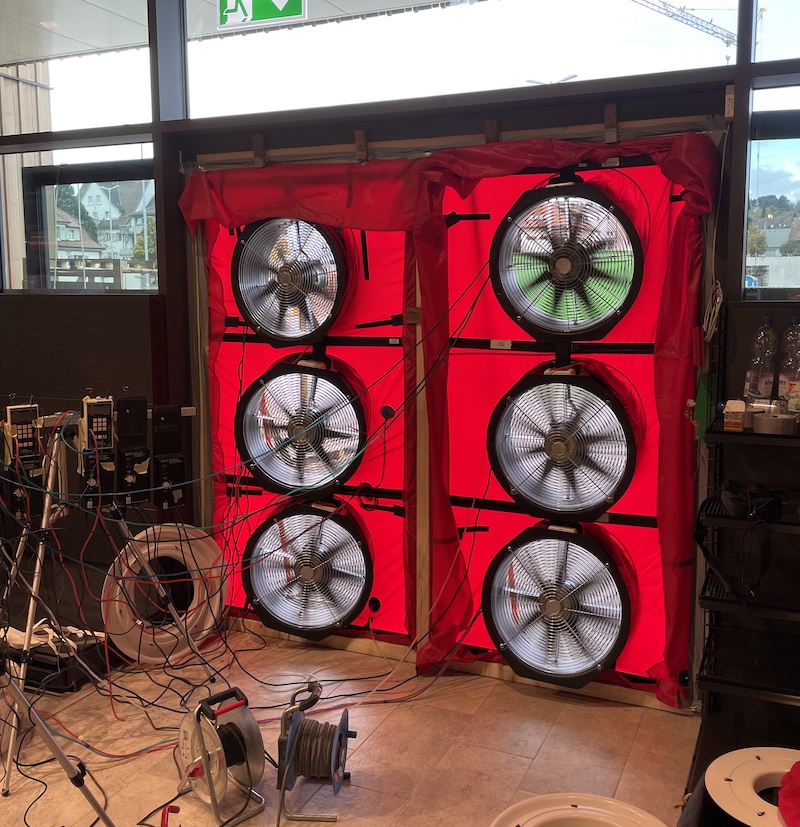 Auch die Luftdichtheit von Gebäuden wird immer wichtiger. Die Qualität der Luftdichtheit der Gebäudehülle überprüfen wir mit einem oder mehreren kalibrierten Messgeräten, einer sogenannten Blower Door.